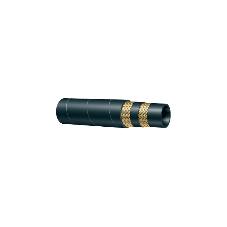 - Первый рукав – стандартный оплеточный гидравлический шланг высокого давления VERSO MULTIFLEX 2SN. Представлен в нашем ассортименте в диаметрах от 5 до 51 мм, с максимальным рабочим давлением 420 бар. В качестве усиления имеет 2 металлические оплетки.