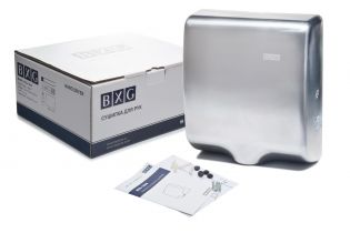 BXG-180A UV - Антивандальная сушилка для рук премиального класса с функцией Ультрафиолетовой стерилизации Ultraviolet Cleanse. Выполнена из нержавеющей стали с матовым покрытием. Толщина корпуса 104 мм. Подойдет для использования в помещениях как со средней, так и с высокой степенью проходимости в помещениях с повышенными требованиями к безопасности и гигиене.