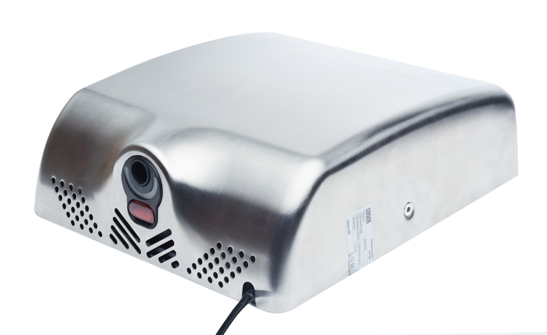 Установлен инновационный двигатель –скорость воздушного потока составляет 100 м/сек, при номинальной его мощности 1000 Вт., при этом уровень шума всего 70 db. Благодаря этому руки становятся сухими менее чем за 7 секунд.