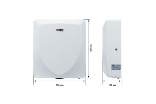 Сушилка изготовлена из высококачественных материалов, которые полностью безопасны и не токсичны. Низкий уровень потребляемой мощности с возможностью отключения нагрева воздуха и быстроты сушки рук, позволяет экономить электроэнергию.