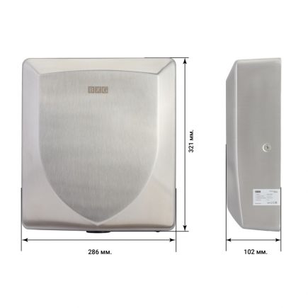 Сушилка изготовлена из высококачественных материалов, которые полностью безопасны и не токсичны. Низкий уровень потребляемой мощности с возможностью отключения нагрева воздуха и быстроты сушки рук, позволяет экономить электроэнергию