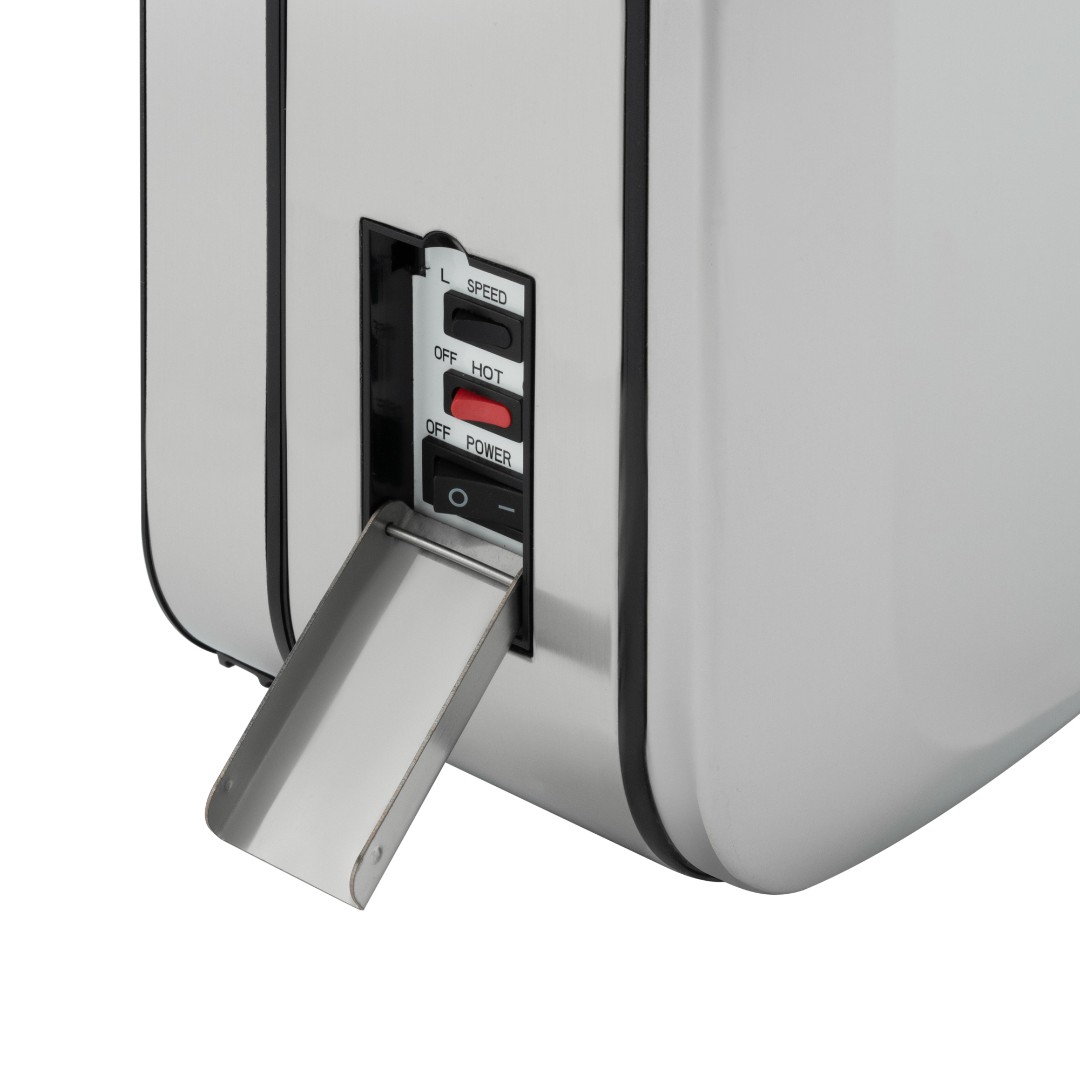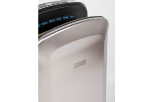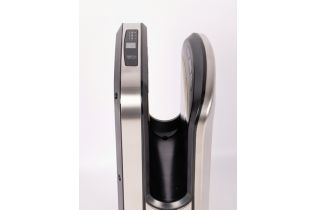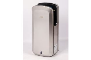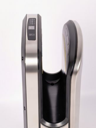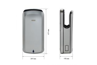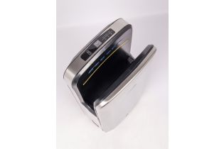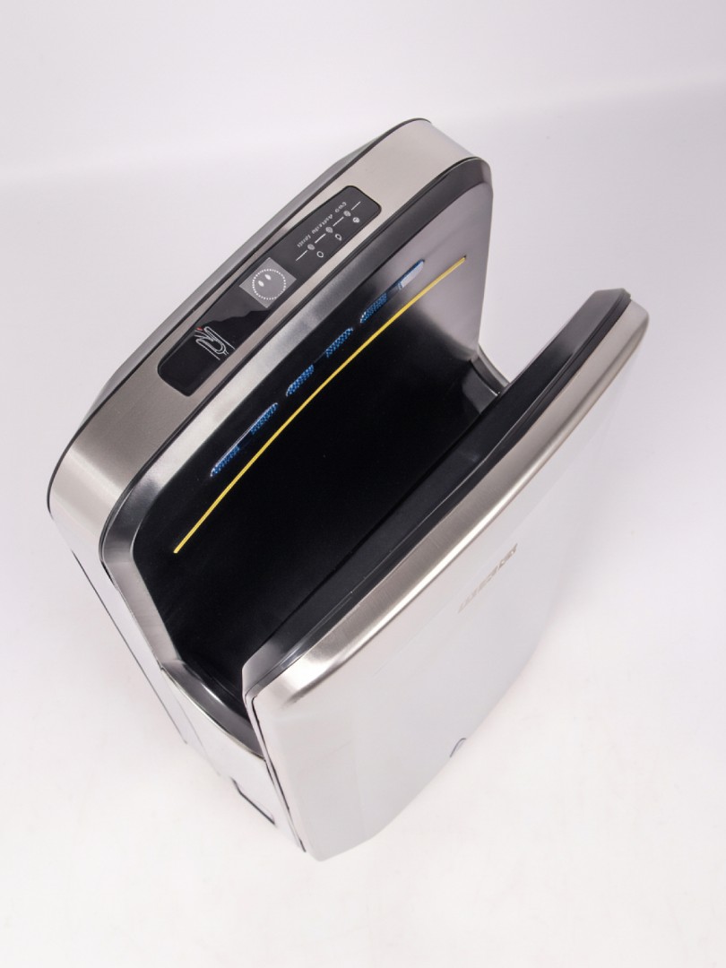 Установлен инновационный двигатель –скорость воздушного потока составляет 150 м/сек, при номинальной его мощности 1650 Вт., при этом уровень шума всего 65 db. Благодаря этому руки становятся сухими менее чем за 5-7 секунд. В устройстве 2 скоростных и 2 температурных режима: горячий (принудительный) и автоматический, при котором сушилка сама определит необходимую комфортную температуру, подаваемую на руки, в зависимости от температуры окружающей среды.