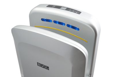 BXG-JET-7200С UV обладает самым высоким классом влагозащиты IPX4 (исключено попадание влаги вовнутрь устройства со всех сторон) и возможность короткого замыкания или удара электрическим током при правильной эксплуатации исключена.. Благодаря ИК-датчикам и технологии микропроцессорного управления осуществляется независимый контроль, который предотвращает слишком долгое использование сушилки или использование не по назначению. Прибор оснащён устройством автоматического отключения на случай перегрева, короткого замыкания или скачков напряжения в электросети.