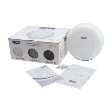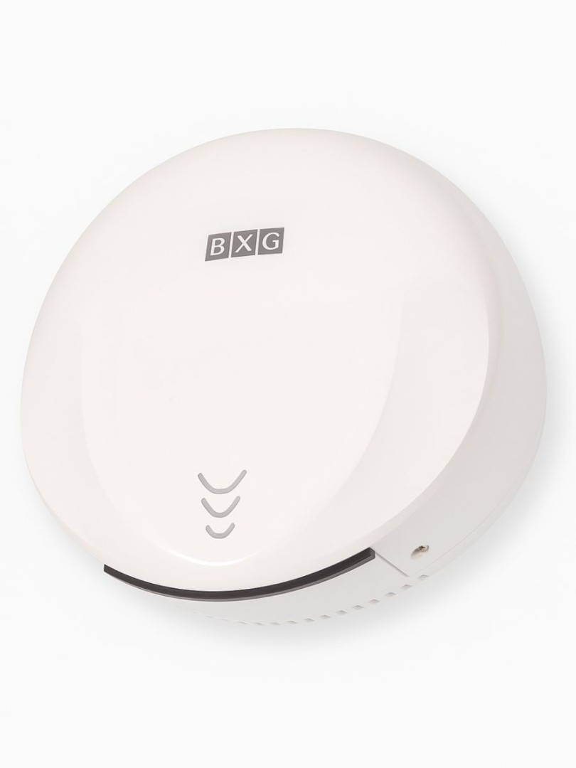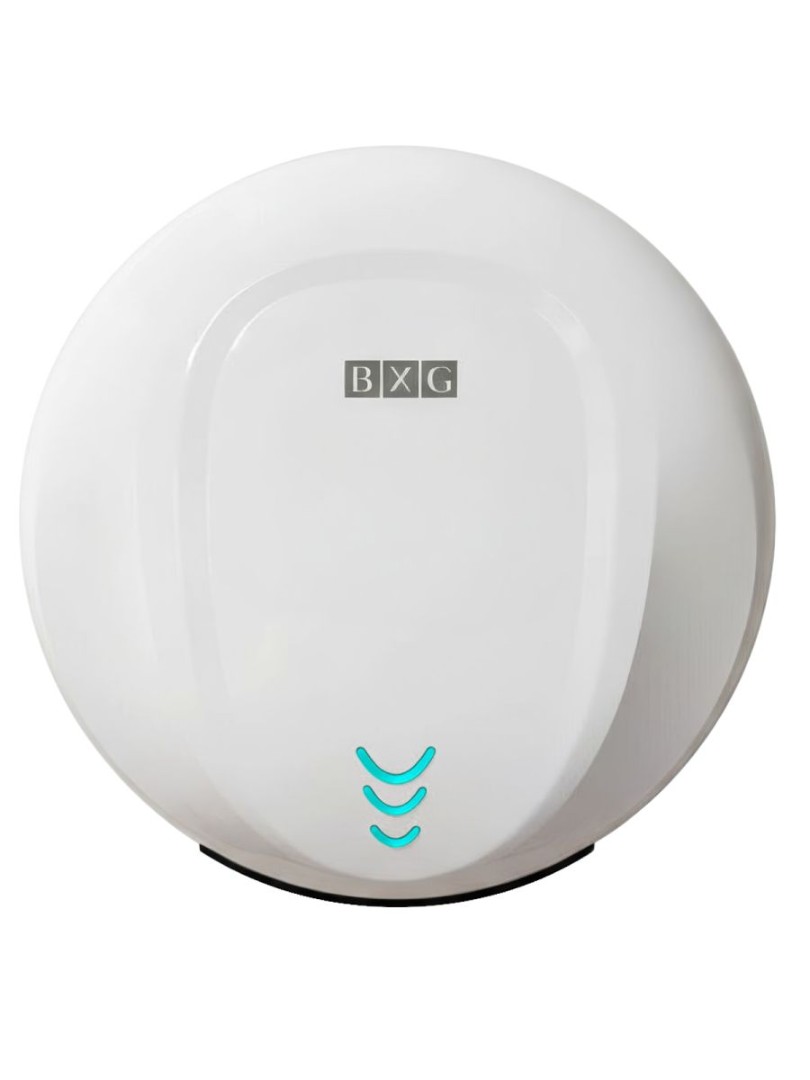 BXG-300 – Высокоскоростная электросушилка сушилка для рук нового поколения с функцией Ультрафиолетового обеззараживания. Сушилка выполнена из высокопрочного пластика ABS в благородном белом цвете с глянцевым покрытием..