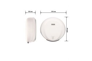 Элегантность: Дизайн сушилки выполнен в элегантном овальном стиле и впишется в любой интерьер санитарной комнаты. Воздуховодные отверстия размещены внизу по корпусу, а форсунки направляют воздух под специальным углом, направляя потоки воздуха от стены на руки , создавая комфортную сушку рук.