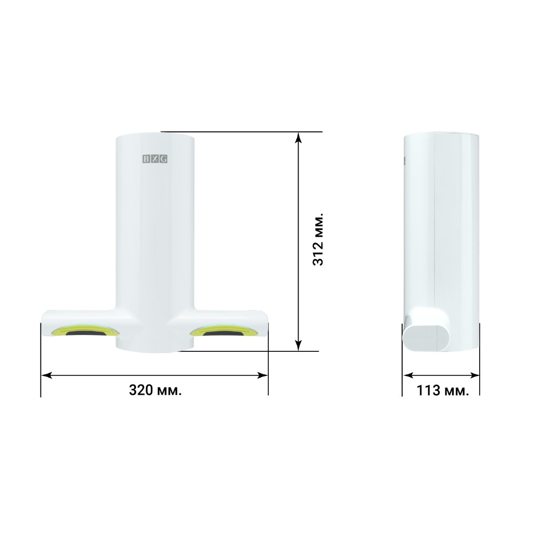 BXG-JET-3200 – Высокоскоростная электросушилка сушилка для рук нового поколения с функцией Ультрафиолетового обеззараживания. Сушилка выполнена из высокопрочного пластика ABS в благородном белом цвете с глянцевым оттенком.