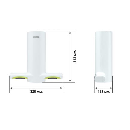 Элегантность: Дизайн сушилки выполнен в элегантном стиле. Воздуховодные отверстия размещены по корпусу с левой и с правой стороны для каждой руки раздельно! В состав воздуховодных отверстий дополнительно включены антибактериальные и антигрибковые компоненты, предотвращающие возникновение и размножение бактерий, грибков и плесени в воздуховодном тракте. Данная зона выделена специальным желтым цветом.