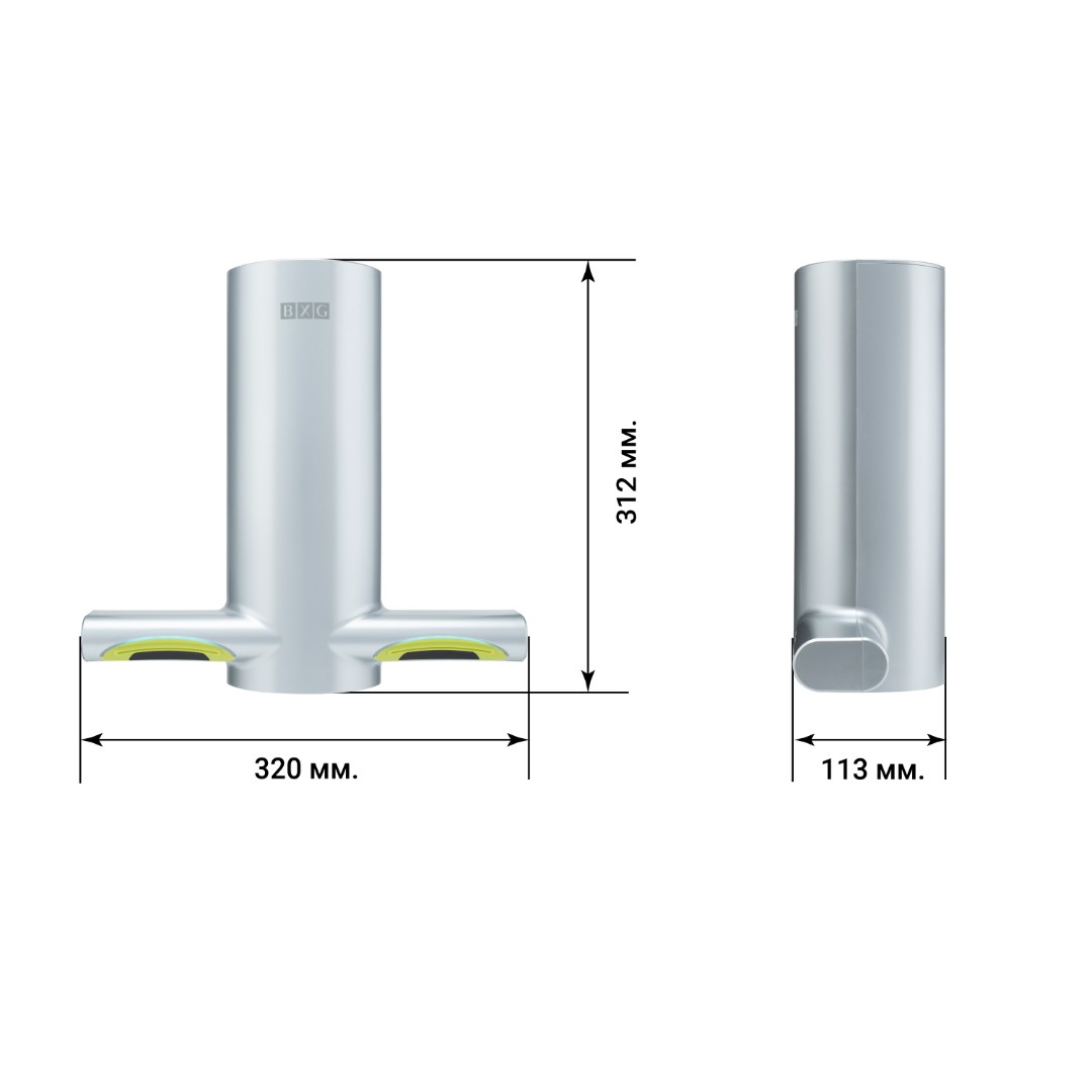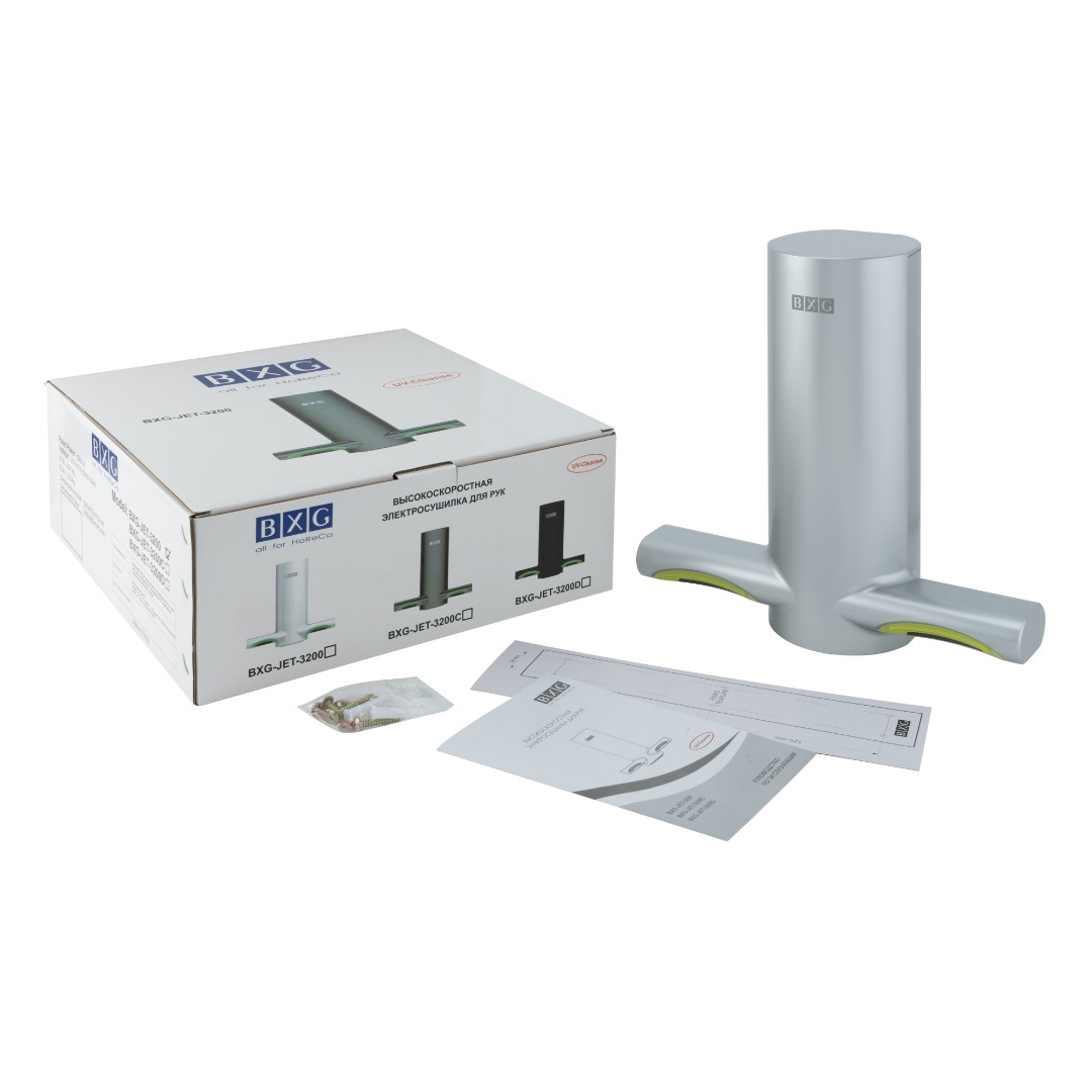 BXG-JET-3200C – Высокоскоростная электросушилка сушилка для рук нового поколения с функцией Ультрафиолетового обеззараживания. Сушилка выполнена из высокопрочного пластика ABS в благородном цвете хром с матовым оттенком.