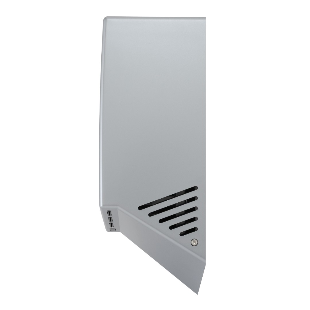 Дизайн сушилки выполнен в элегантном стиле. Воздуховодные отверстия размещены по корпусу под специальным углом, рассчитанным для комфортного расположения рук при их сушке. Сушилка оснащена световыми LED-индикаторами, обеспечивающими визуальную индикацию работы.