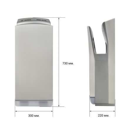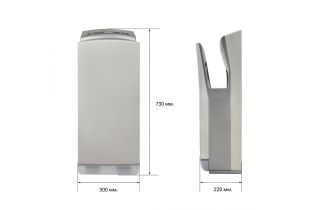 Инновационный двигатель, оснащенный передовыми технологиями, обеспечивающий беспрецедентную скорость воздушного потока - 100 м/сек., позволяет высушить руки за минимально возможное время - 7-10 секунд.