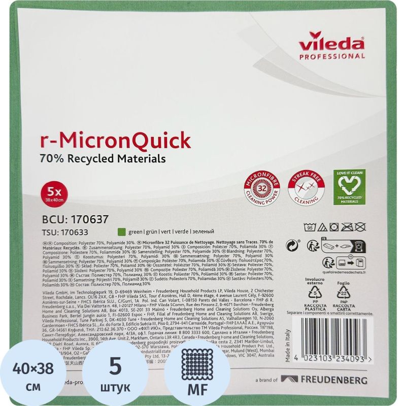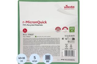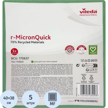 Салфетки р-МикронКвик производятся по запатентованной технологии Micron Fiber Technology от Vileda Professional из тончайшего микроволокна для глубокой и эффективной очистки гладких и деликатных поверхностей.