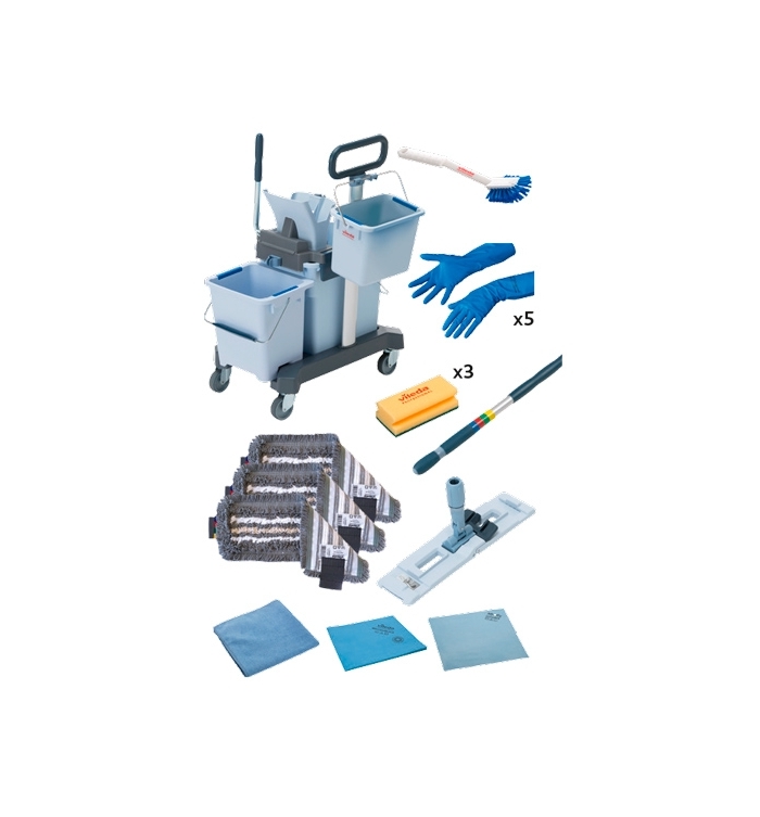 Расширенный комплект инвентаря для уборки на базе высокоэффективной двухведерной системы УльтраСпид Про. В набор входят профессиональные решения для поддержания чистоты в помещении на самом высоком уровне.