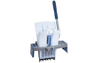 Встроенные фиксаторы швабры позволяют эргономично закрепить ручку с держателем в ведре.