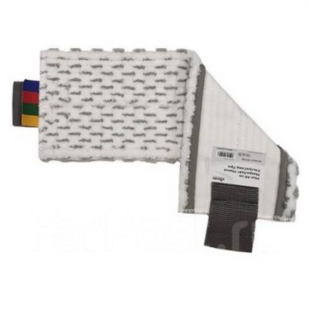 Состав: рабочая поверхность мопа: белый ворс — 100% полиэстеровое микроволокно; серый ворс — 100% полиамид. Основа, ремни, окантовка, хлястики — 100% полиэстер.