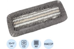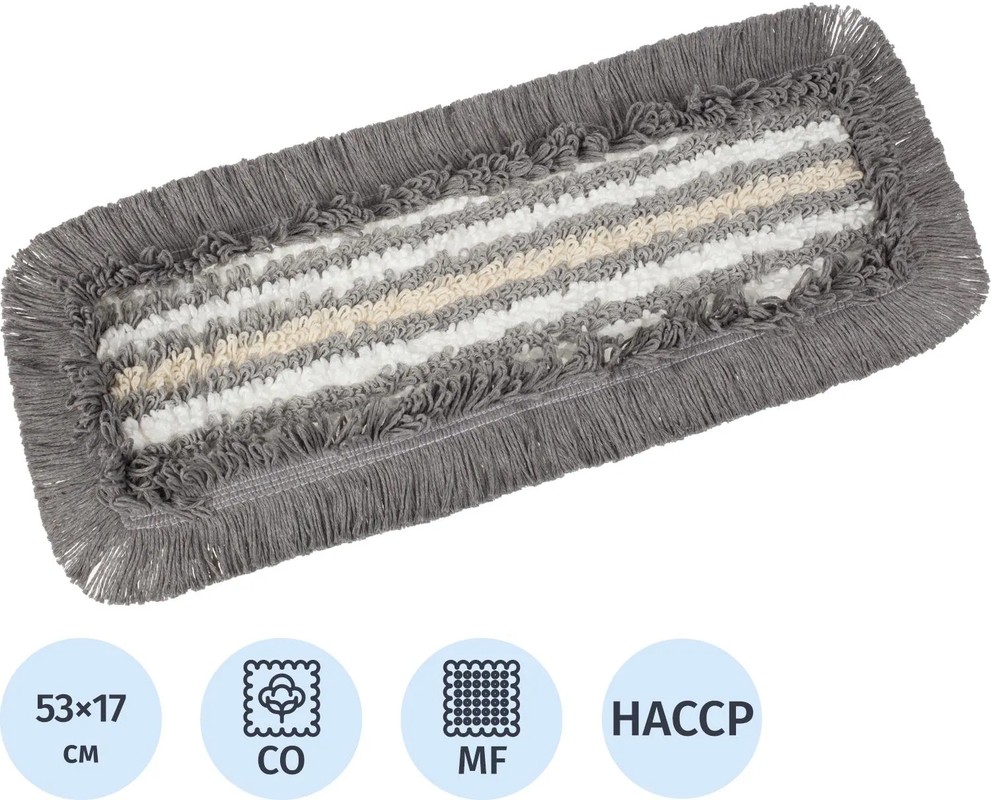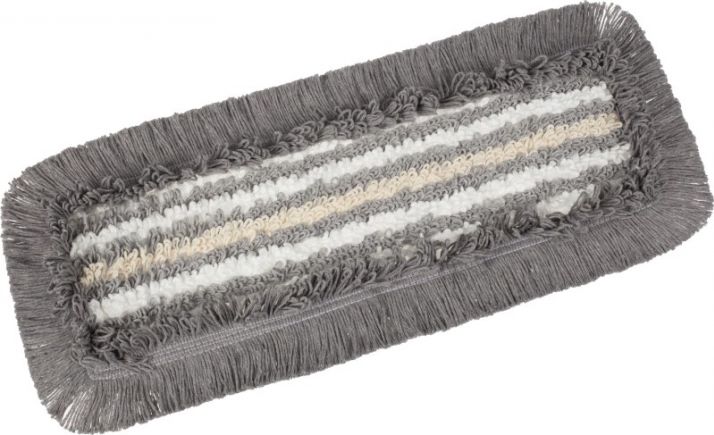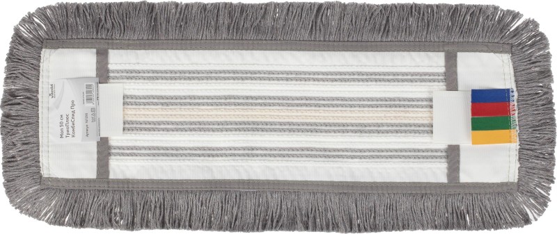Состав: рабочая поверхность мопа: белые нити — 100% полиэфирное микроволокно; серые нити — 70% полиэфиры, 25% хлопок, 5% прочие; бежевые нити — 95% хлопок, 5% прочие. Основа, ремни, окантовка, хлястики — 100% полиэфиры.