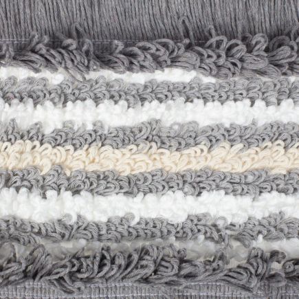 Высокоэффективная структура мопа: белые микроволоконные нити отлично отмывают, серые комбинированные нити — оттирают и удерживают грязь, бежевые нити из хлопка — впитывают много грязи и влаги.