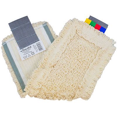 Популярный хлопковый МОП для ежедневной уборки помещений с большим количеством загрязнений. Например, на кухнях и в санузлах. Впитывает воду и грязь в больших объемах.Особенности и преимущества:- отлично впитывает, собирает грязь и отжимается;- благодаря петельчатой конструкции МОП хорошо скользит по полу и собирает в петли загрязнения, удерживая их. Петли также облегчают разрыхление загрязнений;- плотная основа и окантовка, двойная прошивка увеличивают срок службы МОПа;- надежный тафтинг: петли МОПа держат форму, не скатываются и не распускаются в процессе уборки;- ремни МОПа имеют высокую устойчивость к усадке и деформации при соблюдении рекомендаций по использованию, стирке, сушке и хранению;- подходит для держателя и высокоэффективного туннельного отжима системы УльтраСпид Про;- крепление на ремнях;- 4-х цветная кодировка для исключения перекрестных загрязнений.Вес нетто: 135 г.Размер: 14,3 см по ширине и 42,5 см по длине основы.Срок службы: до 1 месяца. При условии соблюдения рекомендаций от Vileda Professional по использованию и стирке.Состав: рабочая поверхность МОПа: тафтинговые нити – 95% хлопок, прочие – 5%; основа, ремни, окантовка, хлястики – 100% ПЭС.Область примененияКоммерческая и некоммерческая недвижимость, учреждения здравоохранения, производства и HoReCa.Влажная уборка всех типов твердых напольных покрытий в зонах с большим количеством влажных загрязнений – кухни, санузлы, входные группы, а также уборка технических загрязнений типа машинного масла, стружки, опилок в мастерских, автосалонах, цехах, на складах.Уборка методом «ведро-вода» и спрей-методом с системой УльтраСпид Про.Типы поверхностей: структурированные полы, а также керамическая плитка, керамогранит, натуральный камень, линолеум, наливной пол, виниловый пол, бетон, а также другие покрытия со средней и высокой влагостойкостью.